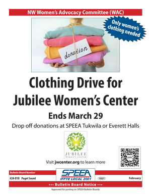 | Northwest Women's Advocacy Committee (WAC) meetings 4th Tuesday of the month 5 p.m. (Pacific) SPEEA Halls map